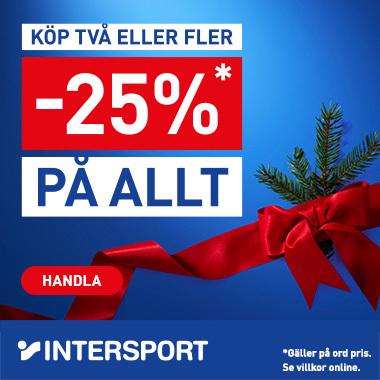 * Gäller vid köp av två eller fler produkter i butik eller på intersport.se. Rabatten dras i kassan. Gäller på ord. priser och kan ej kombineras med andra rabatter och erbjudanden. Gäller ej på cykel, hockey, adidas Originals, produkter markerade med "exkluderad från rabatter", föreningskläder, supporterprodukter, beställningsprodukter eller "sista chansen"-produkter.